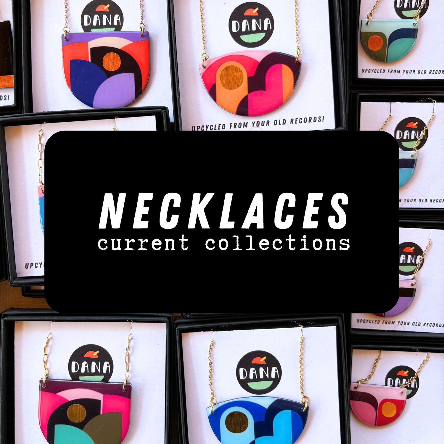 NECKLACES / current collectionsEco conscious vinyl record necklaces by DANA Jewellery handmade in Ireland.