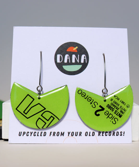 1981 RCA Side 2 Stereo / Bright lime green funky upcycled vinyl record earrings / ONE OF A KIND