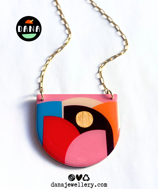 CLEO no.2 necklace in pink, red, plum, blue, yellow, gold / graphic necklace handmade in Ireland