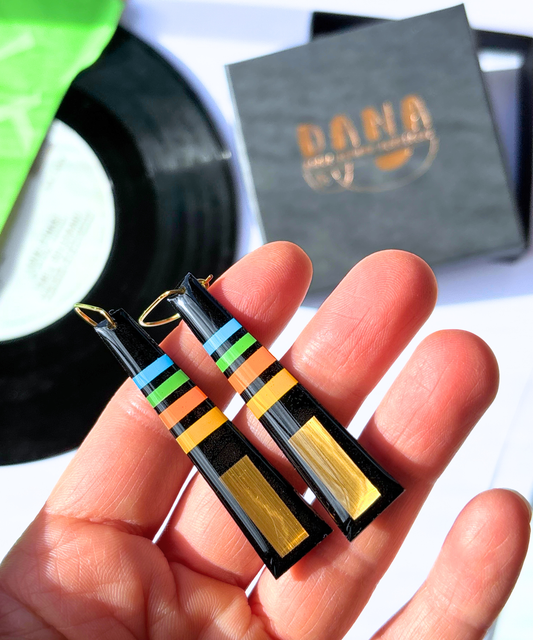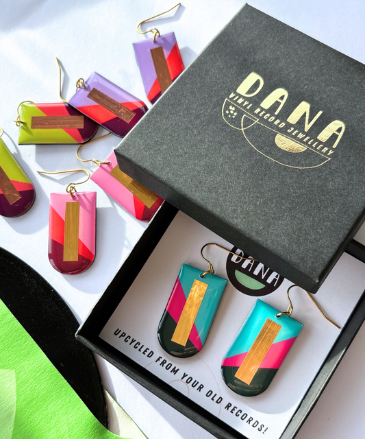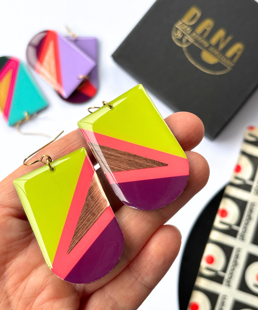 ANDY in purple and gold | bold graphic upcycled earrings