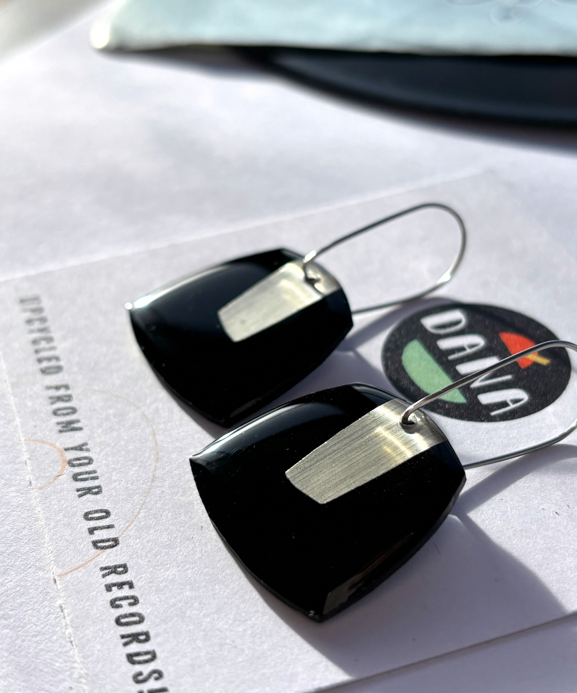Upcycled from your old vinyl records, BETTY in black and warm silver is oh so chic yet edgy, with contrasting sharp and curved lines combined to that metallic pop that makes the eye linger. This design is a fab present for the vinyl enthusiast in your life or the lover of quirky and unique art jewellery or innovative upcycled design. All pieces are slow made with intention in my little home studio in Co. Kerry, from vinyl records saved from ending up in landfill. Yup, trash has never looked better.