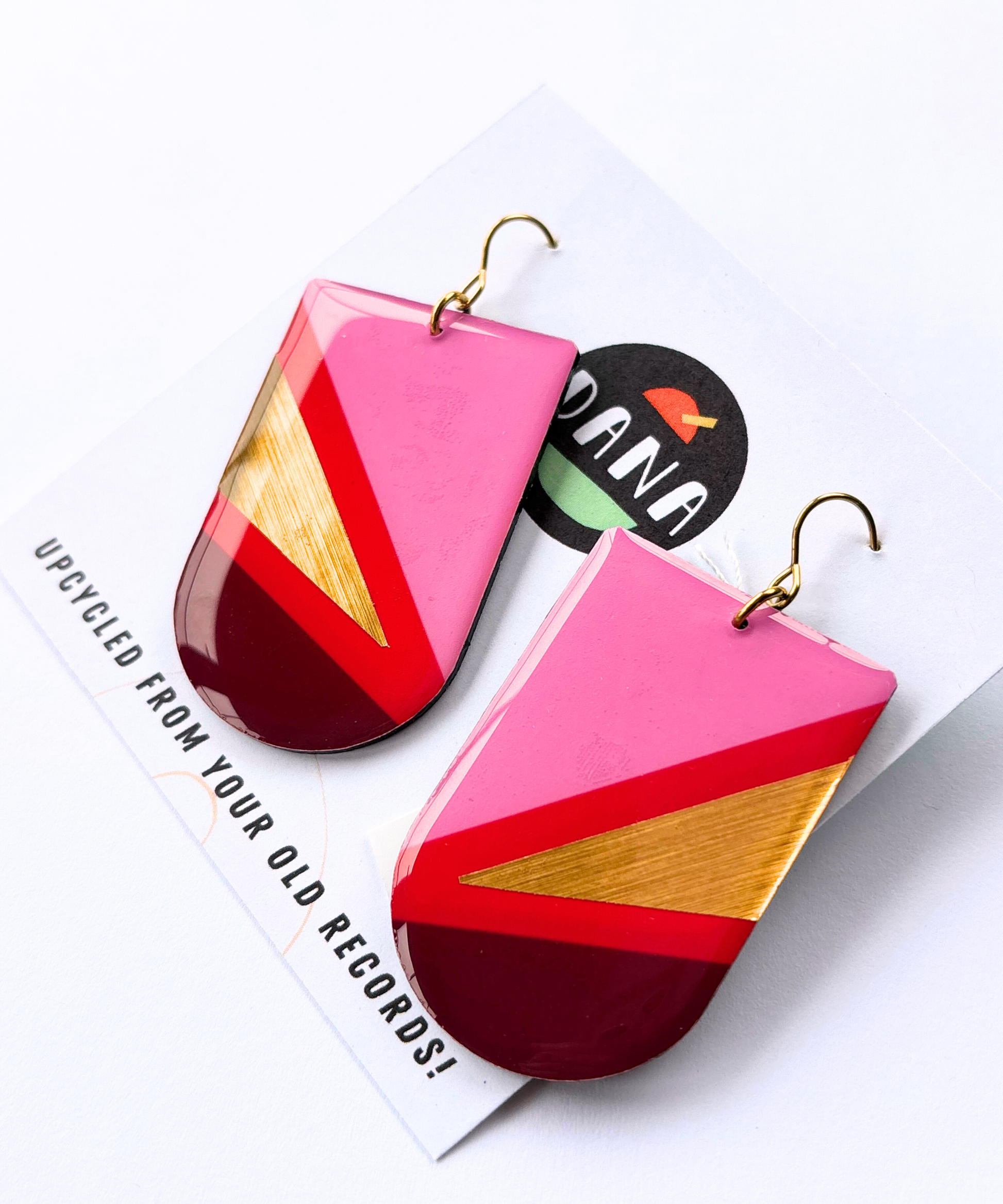 DANA jewellery designs are made using unwanted and beat up vinyl records, saved from ending up in landfill, that once played music for someone, somewhere, back in the day. Each pair carries its own story etched into the grooves of the record and a new chapter is about to begin with you. Yup, rubbish has never looked better.