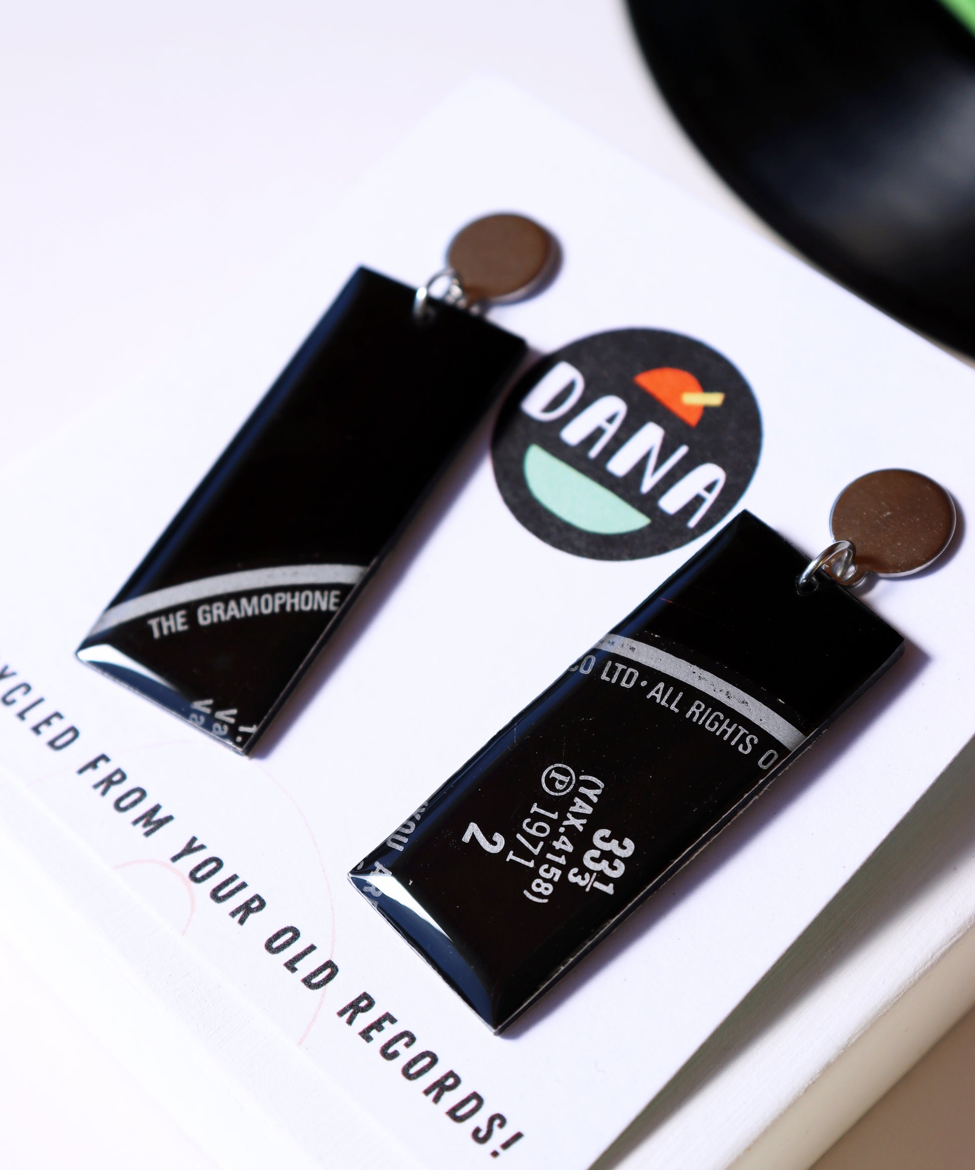 One of a kind vinyl record earrings that used to spin on a turntable in a retro sitting room back in the day? Yup. And even better; these were saved from ending up in a landfill after spending a looong time in a dusty shed, or attic… or who knows where.