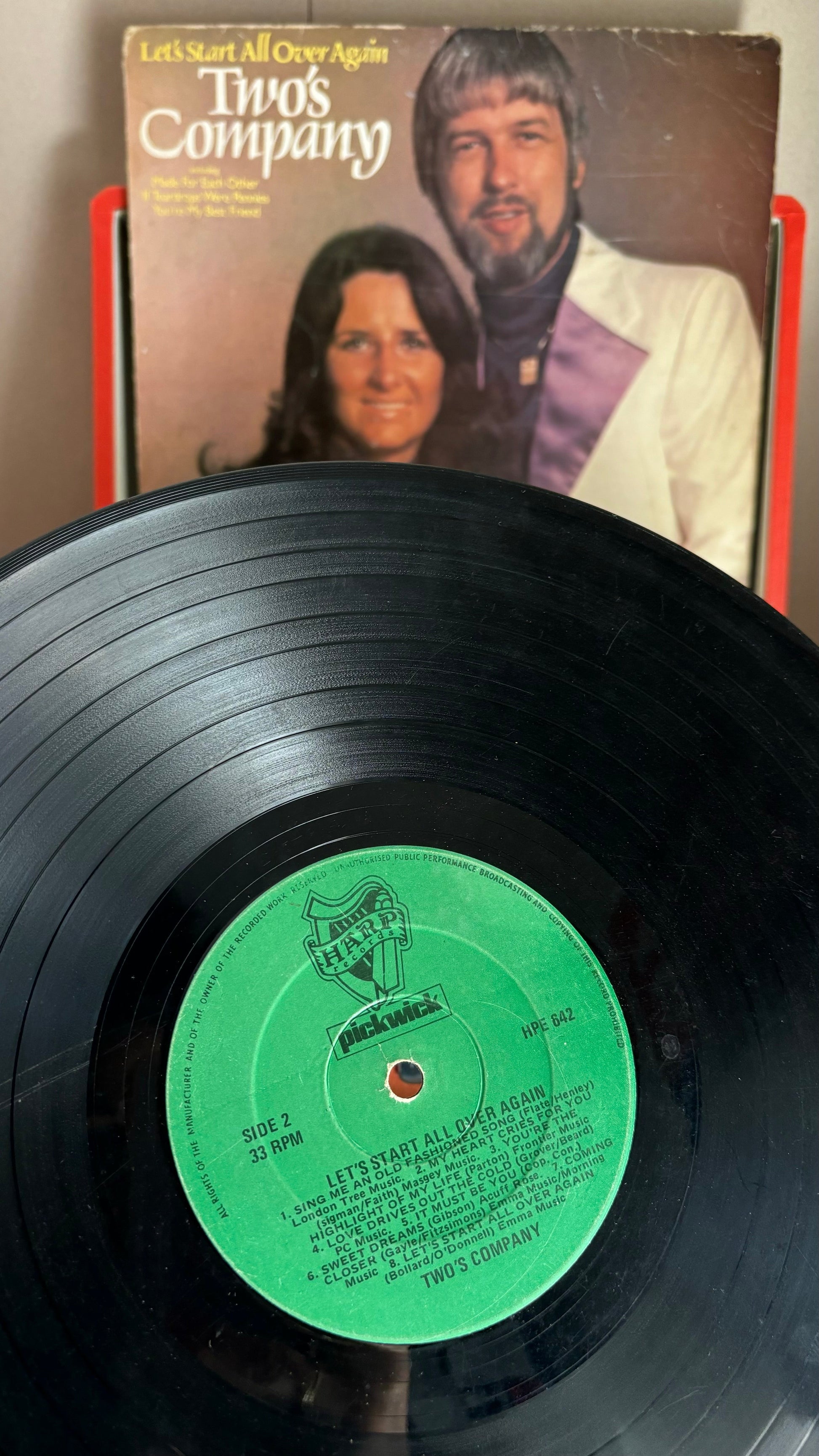 I made this pair from a Harp Records album called "Let's start all over again" by Two's Company. These vinyl record earrings are one of a kind and used to spin on a turntable in a retro sitting room back in the day. Yup. And even better; these were saved from ending up in a landfill after spending a looong time in a dusty shed, or attic… or who knows where.