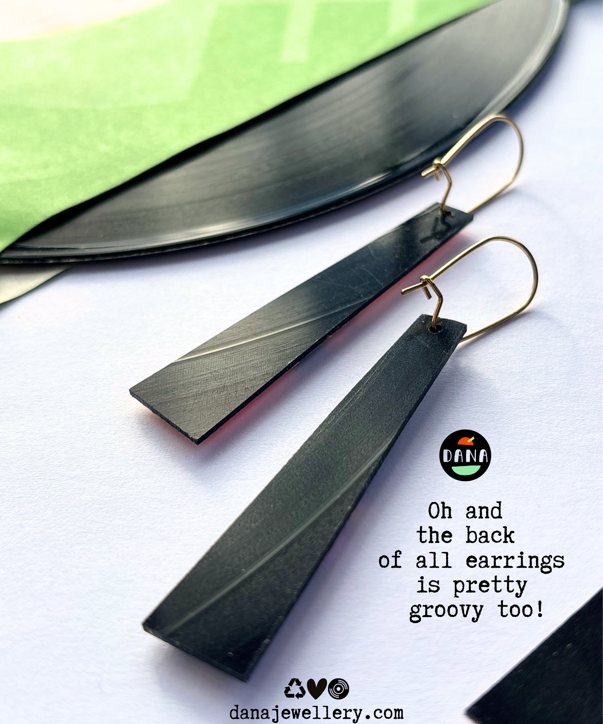 DANA jewellery designs are made using unwanted and beat up vinyl records, saved from ending up in landfill, that once played music for someone, somewhere, back in the day. Each pair carries its own story etched into the grooves of the record and a new chapter is about to begin with you. Yup, rubbish has never looked better.
